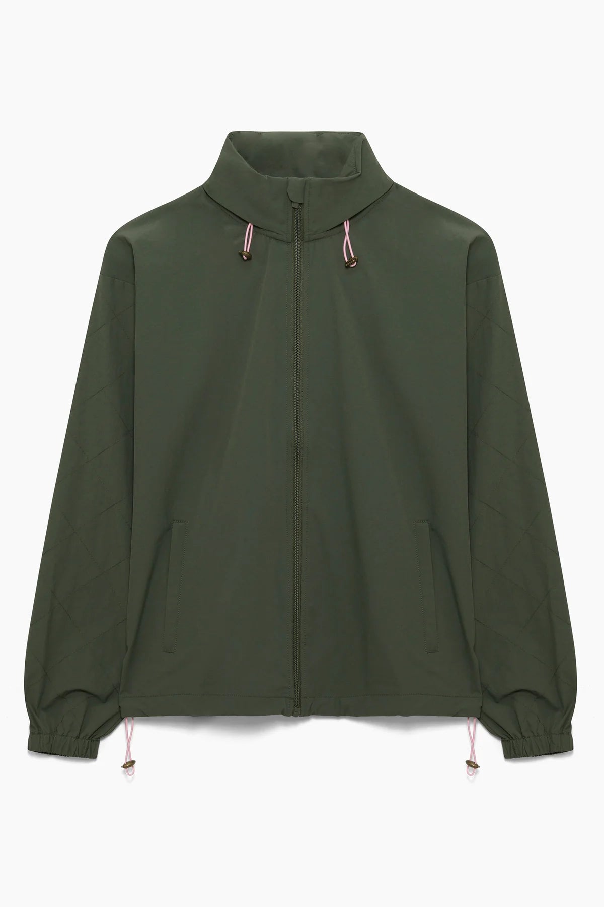 Designed to defy the elements without sacrificing style, the Jessica Windbreaker blends technical performance with a sleek, modern silhouette. Water and wind-resistant, this lightweight layer shields you from unpredictable weather while quilt-stitched sleeves and a convertible hood elevate the design from utilitarian to effortlessly polished. Perfect for barn days, errands, or just chasing the clouds away.