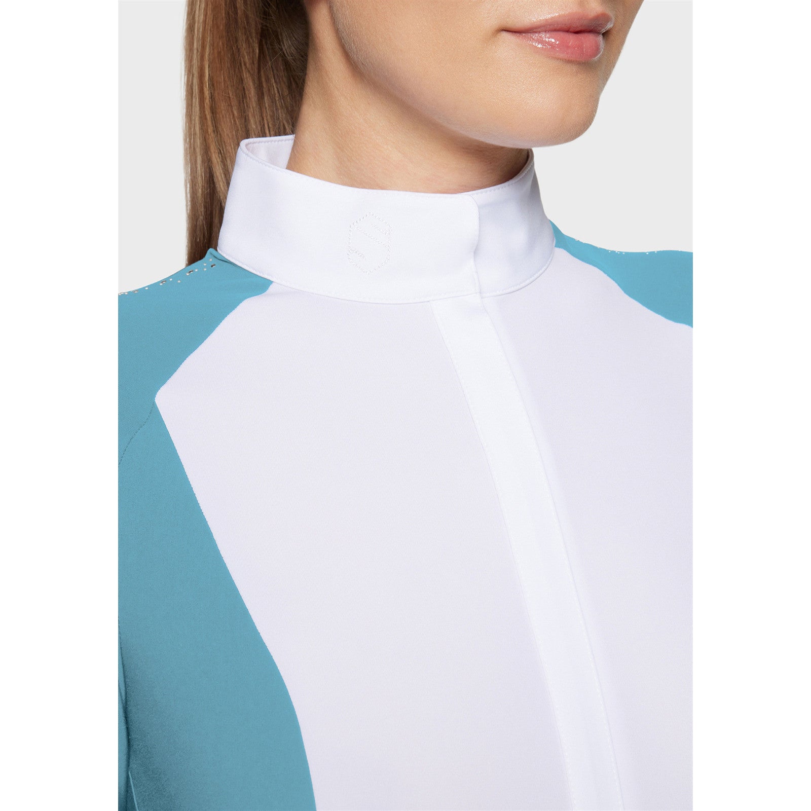 This equestrian competition wear is trusted by professional riders worldwide for its blend of technical innovation and elegant design. Whether you are preparing for show jumping or any horse riding event, this show jumping top delivers superior comfort with standout style. The Samshield Gretta Metal Dots shirt elevates your horse riding clothes collection with proven performance features that support your best ride every time.