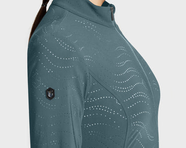 No word to describe how beautiful and functional this now summer riding jacket is. Amazing fabric with laser cut hole pattern in Springs prettiest color - Stormy Sea. Great for riding or wearing out to dinner on a summer evening. NOT A LULU